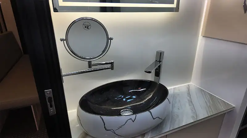 Stainless Steel Faucet | Porcelain Sink | Mirrored Cabinet | Hand Held Shower |