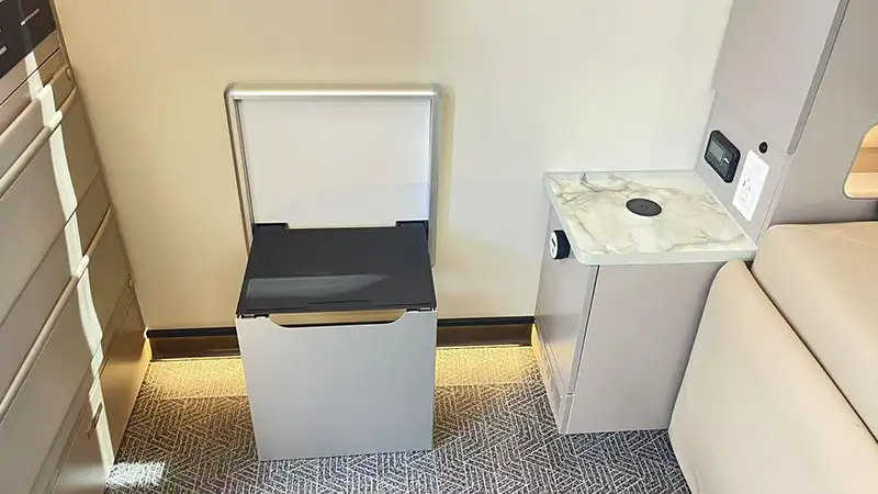 DC Fan | Stainless Steel Faucet | Porcelain Sink | Mirrored Cabinet |